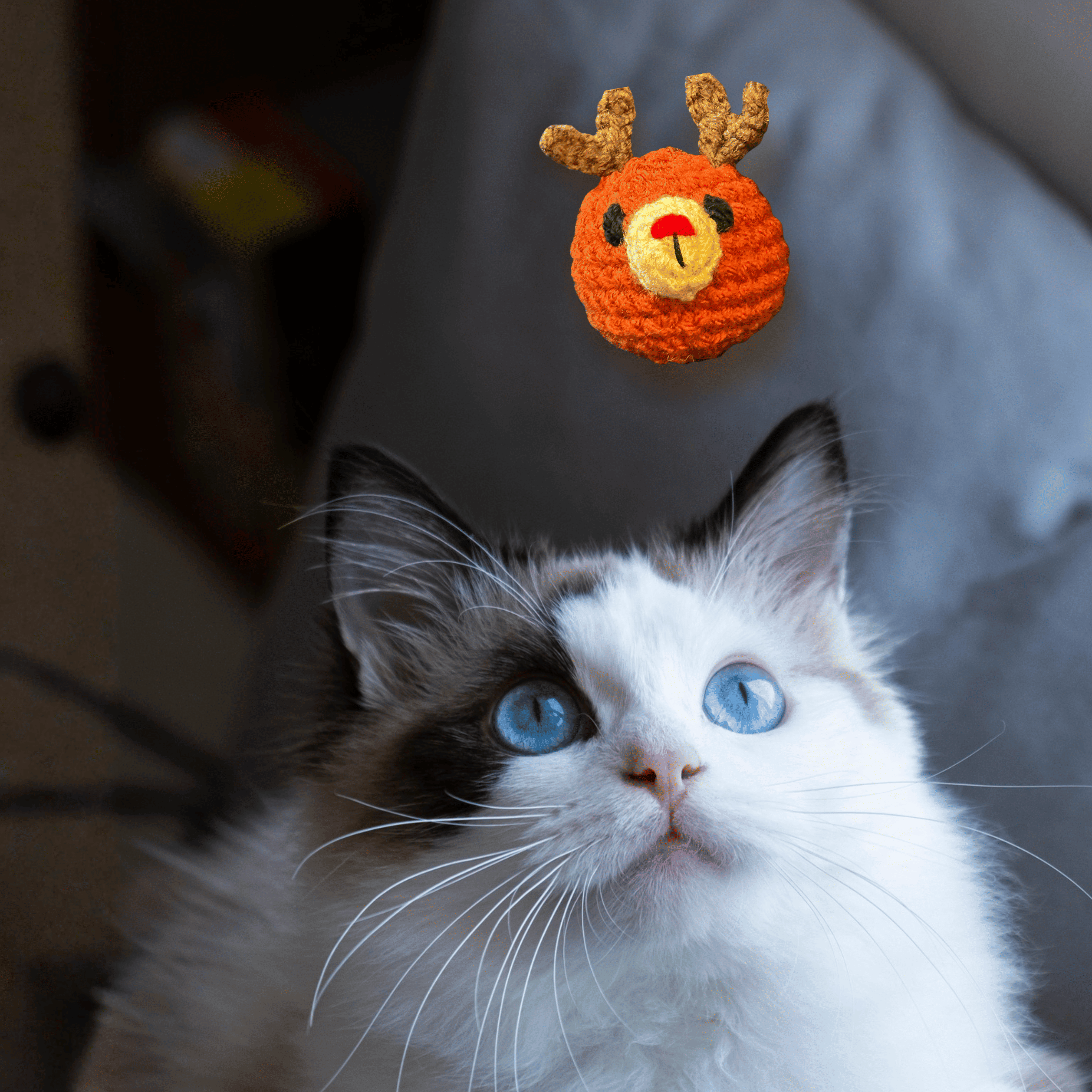 The Winter Reindeer Duo includes both a lightweight Chunkle Puff and a weighted Chunkle Chunk, each infused with ⊹˚ Miracle Nip ˚⊹, a proprietary botanical blend scientifically shown to awaken feline curiosity, sustain play through layered scent release, stimulate natural hunting behavior, and re-engage cats who usually ignore toys. The infusion is pressed in the old French tradition of capturing fragrance slowly, preserving the full aromatic character of each plant.
