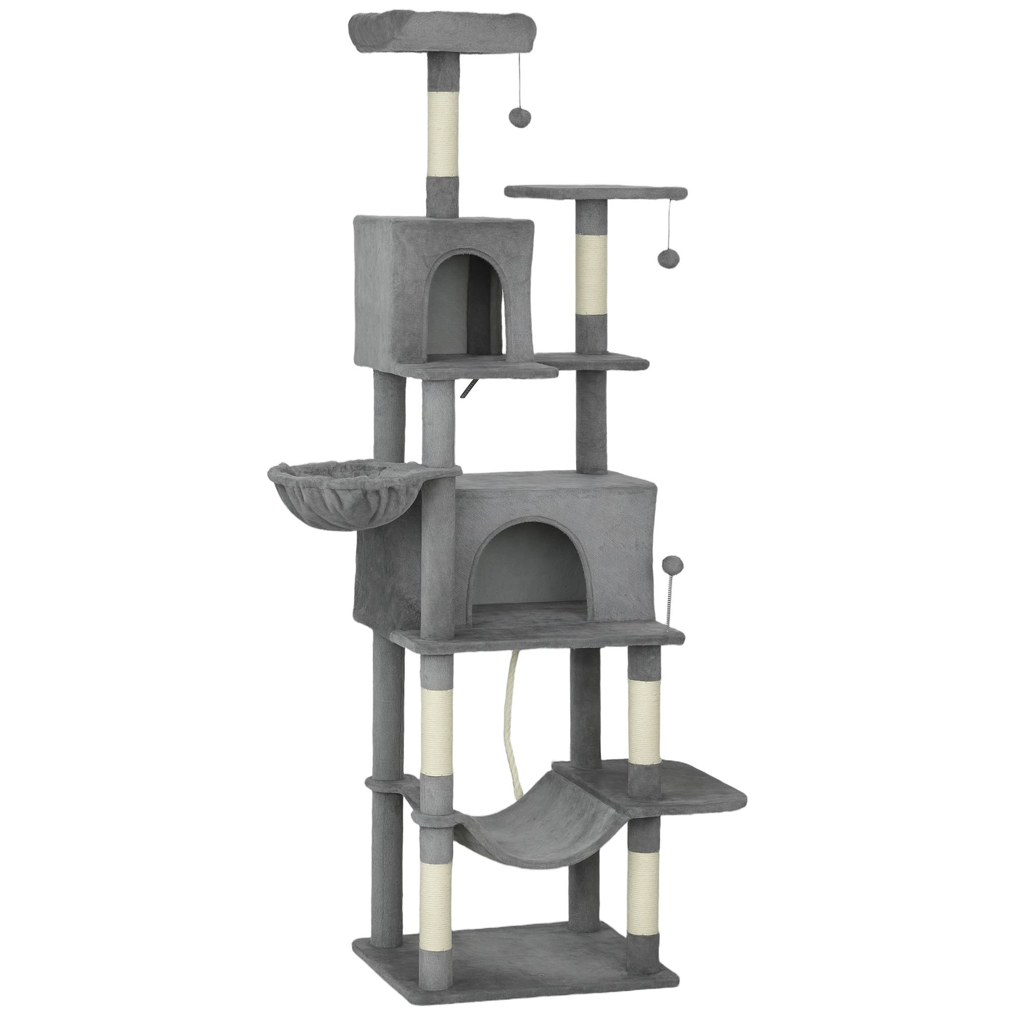 Home > Multi-Level Cat Tower, 80" Tall Cat Tree, with 2 Condos, 2 Hammocks, 6 Sisal Scratching Posts, Dark Gray