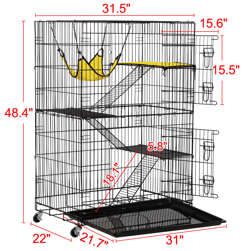 4 Tiers Rolling Cat Cage Pet Cage with Hammock; Black