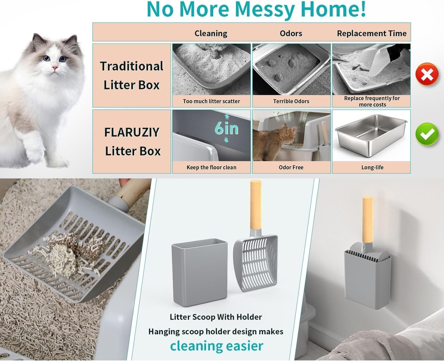 Home > Stainless Steel Cat Litter Box, XXL Extra Large Jumbo Metal Litter Box, with Large Cat Litter Shovel, Anti Leakage Sand Pedal