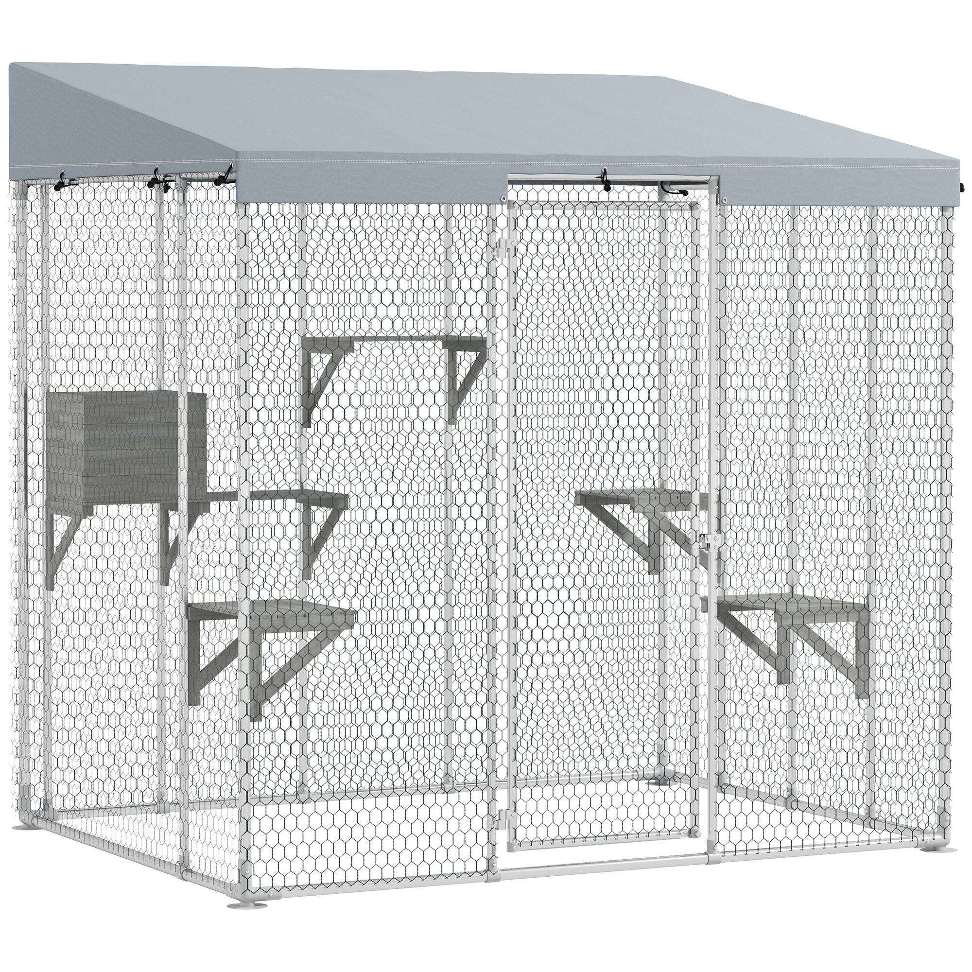 Discover the joy of shared space with the PawHut cat patio! This expansive outdoor cat enclosure offers 32 sq. ft play areas, suitable for 1-3 cats. Lounge inside with your feline friends, thanks to space for a reclining chair. With multiple jumping platforms and a cozy condo, your cats will enjoy endless fun under the sun, while the waterproof and anti-UV fabric ensures their comfort and safety.