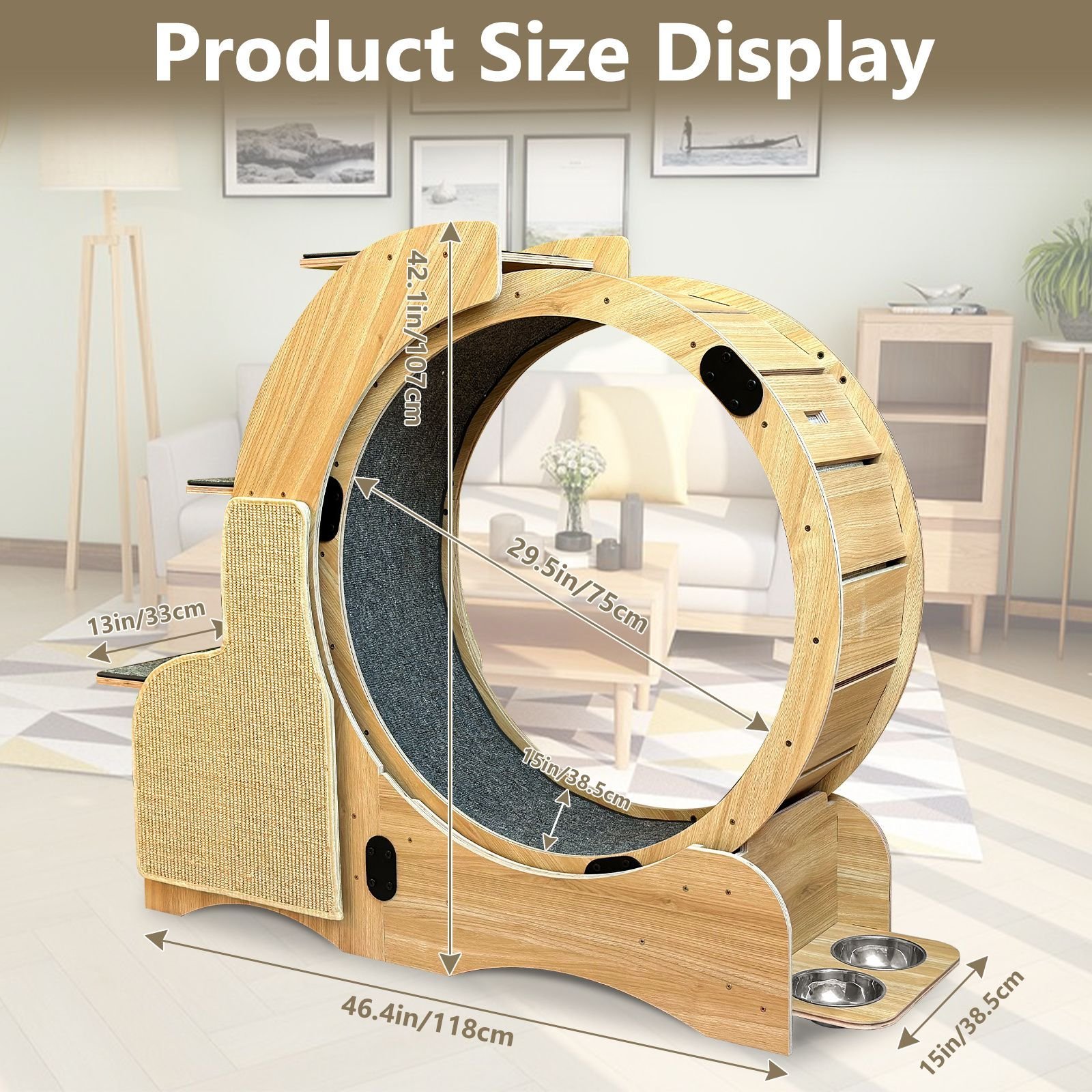 5-in-1 Cat Sports Running Wheel, Cats Wheel Wood Climbing Frame, Cat Litter Fitness Wheel, Oversized Roller Cat Indoor Activity Center,Large(Right)
