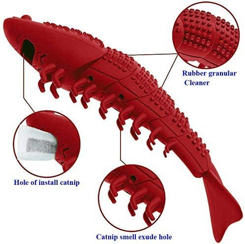 5.VERSATILE DESIGN: The Cat Toothbrush Toy was a fish shape, the product surface has raised spots, can clean the cat teeth deeply. The side hole design easily emits the smell of catnip, attracting cats to play; catnip mouth convenient to place catnip.