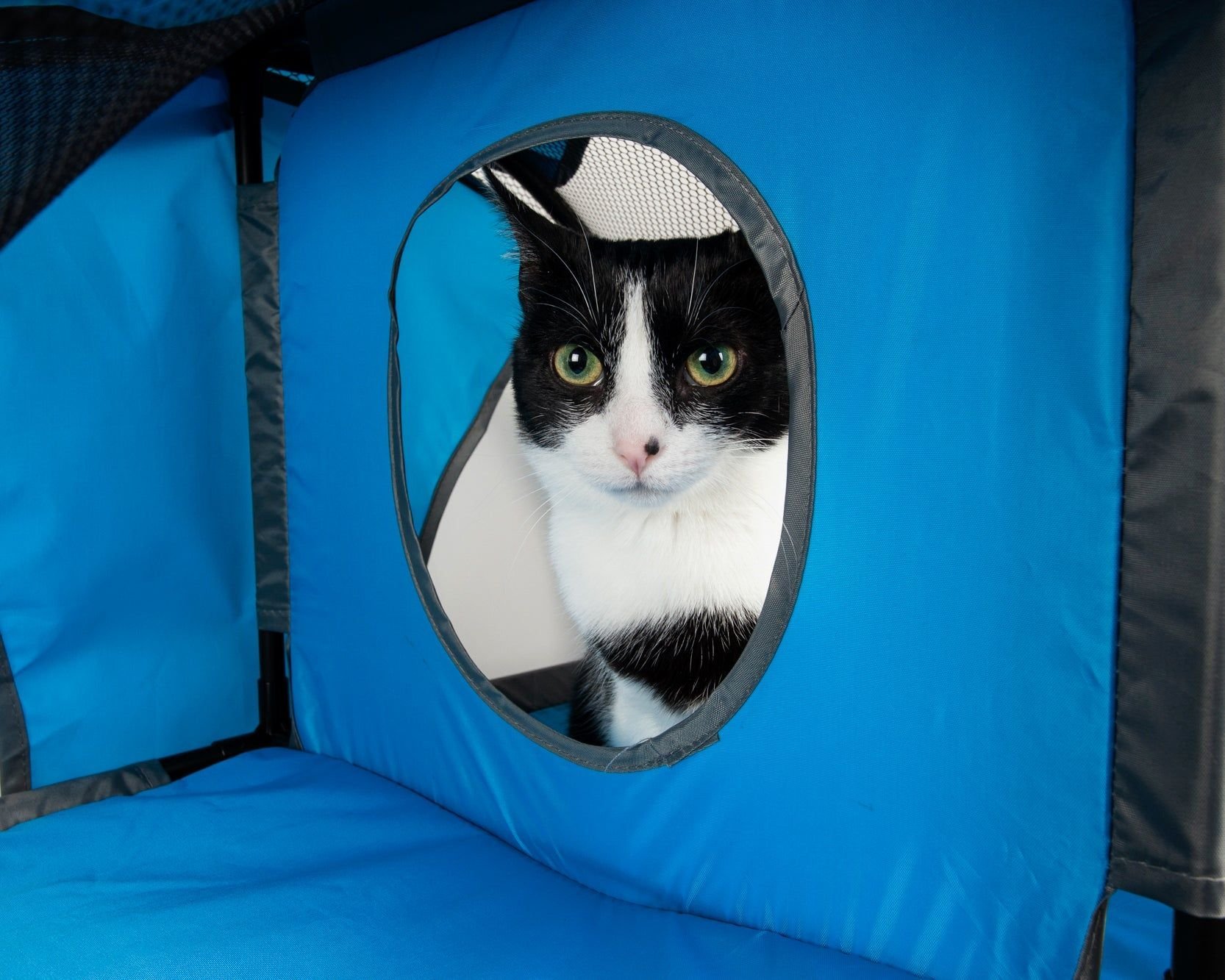 The Pet Life Kitty-Play Obstacle Travel Collapsible Soft Folding Pet Cat House is constructed with durable PU coated polyester and mesh netting all around for breathability and framed with lightweight poles for added durability. The Kitty-Play Cat House features pass-through entrances at the bottom with dual mezzanine holes for climb through passage. Easy to install and setup. Great for interactive fun and brain activity development. Heavy enough to hold over 120 lbs. of weight, and light and small enough to travel and setup. Easier for storage and a simpler alternative to those bulkier conventional heavier cat houses. Features multiple tunnels located at the interior making it great for multiple cats. Available in multiple colors.