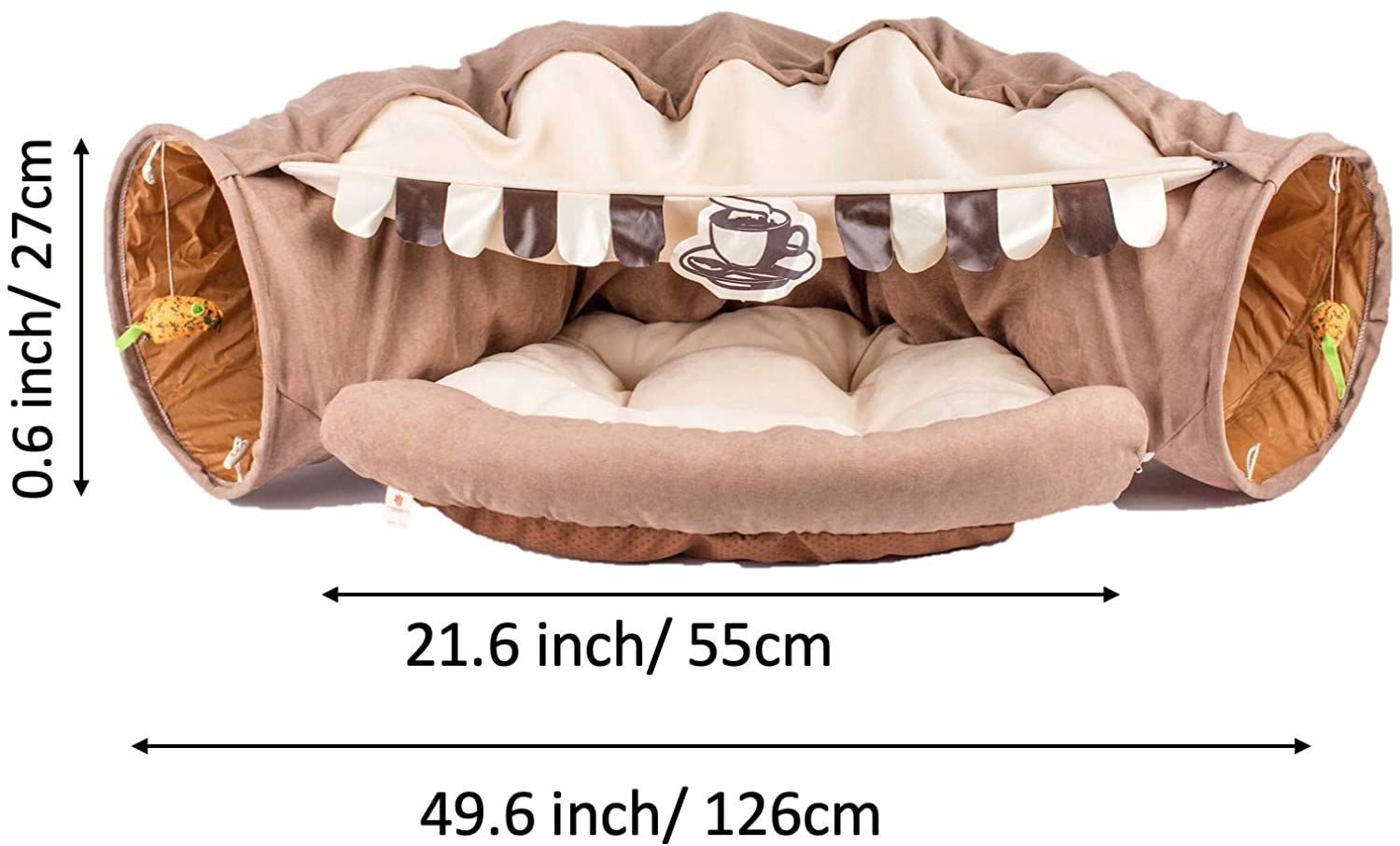 1.SOFT AND COZY BED - Thick and scratch resistant materials, the cat pad is filled with full PP cotton, more comfortable for rest and play. Size: length: 126cm. Tunnel diameter: 27cm. Nest length: 55cm. Weight: about 1KG. Suitable for most cats.
