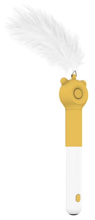 1.The above top Feather and Pom-Pom Cat Teaser attachment retracts and detracts at the press of a button through a built-in string and locks into place