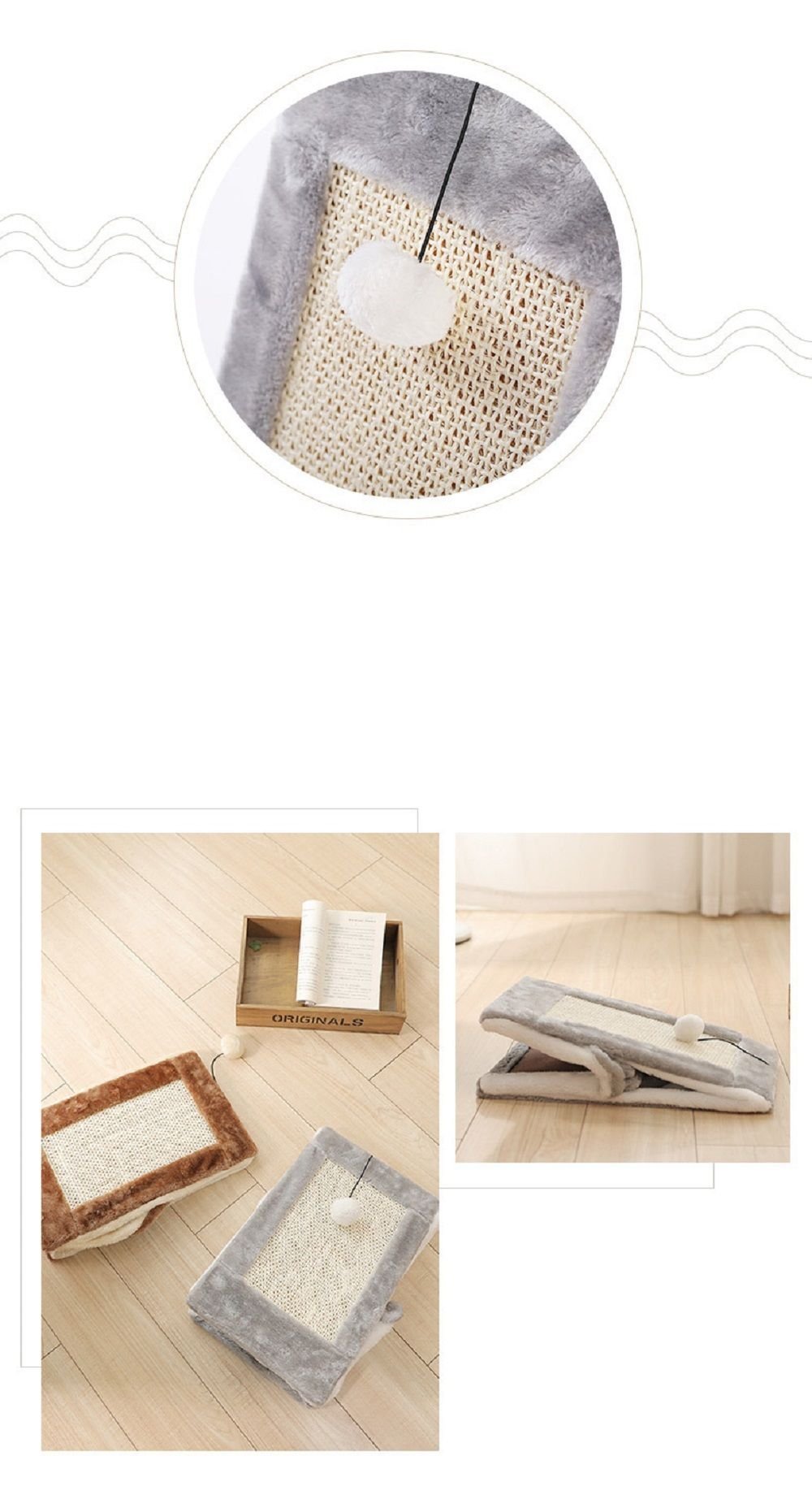 4.Durability: With a durable, natural scratching surface,can withstand Bites and scratches of pets and can last long and help protect your furniture from feline claws. A puffy pom-pom dangles from the inside ceiling to provide hours of entertainment